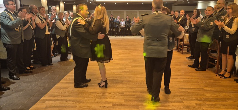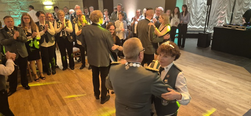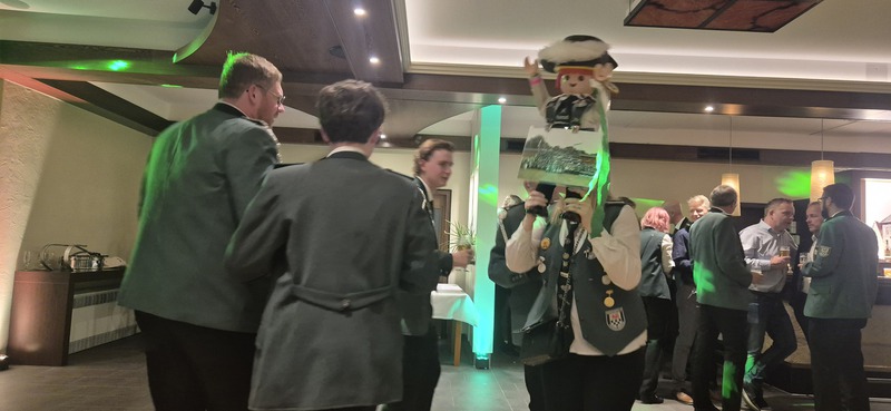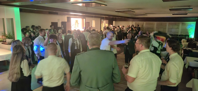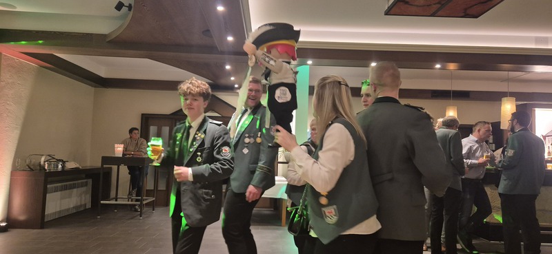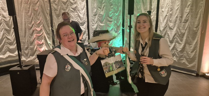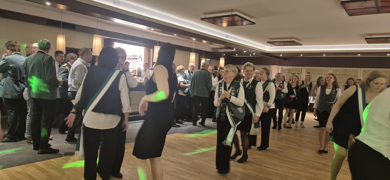 Dabei hat es sich unsere Schützenkönigin Birgit Harzmeyer nicht nehmen lassen – trotz anfänglicher Abwesenheit – für einen Sektempfang durch ihre Ehrendamen zu sorgen.